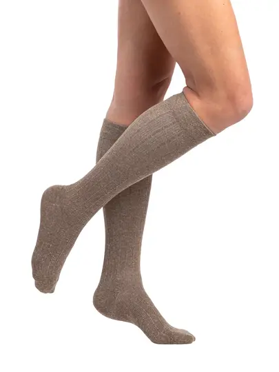 Stylish Ribbed Design: Unlike traditional compression hosiery, the Style Linen line features a chic ribbed texture and is available in various fashionable colors, ensuring you look great while getting the circulation support you need.